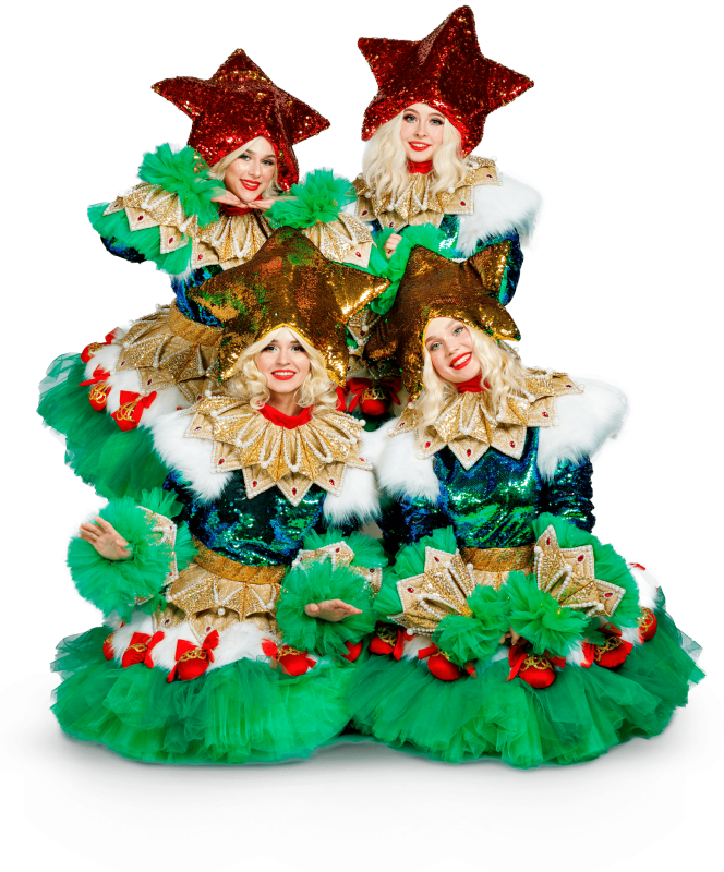 новогодние ёлки с Дедом Морозом и Снегурочкой;